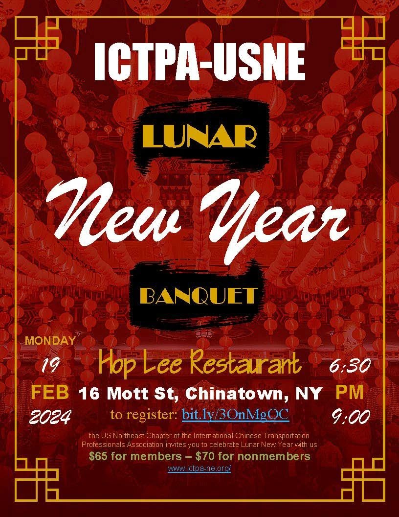 Please join ICTPA®澳洲幸运5体彩官网-USNE chapter at our upcoming Lunar New Year banquet on Monday February 19 at 6:30pm. Our event features a 10-course Cantonese-style banquet. We look forward to hosting you at Hop Lee Restaurant in Chinatown, NYC!